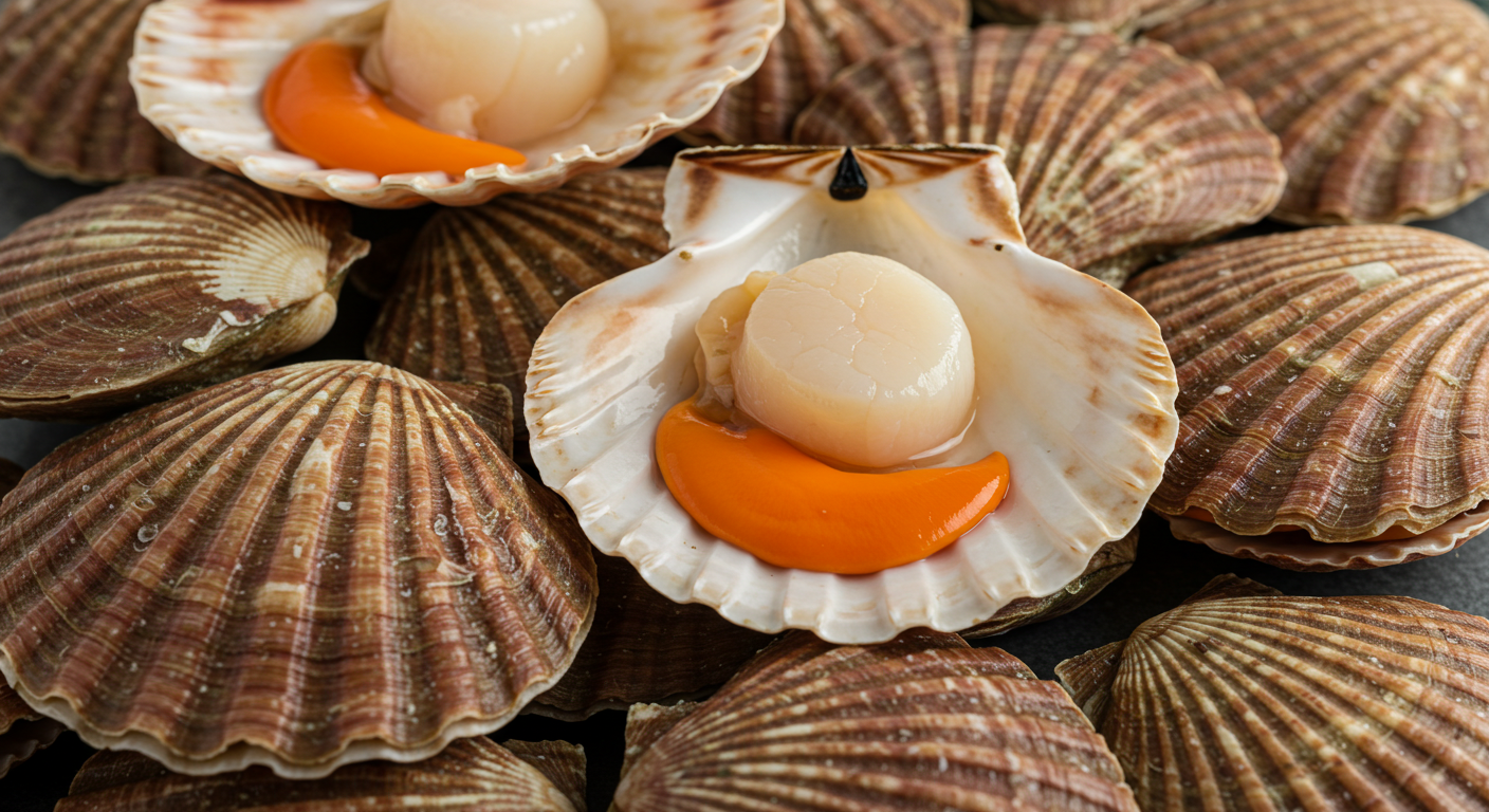 Half Shell King Scallops – 3kg Box – succulent, premium-quality scallops in half shells, perfect for gourmet seafood dishes with a rich, sweet flavor and tender texture.